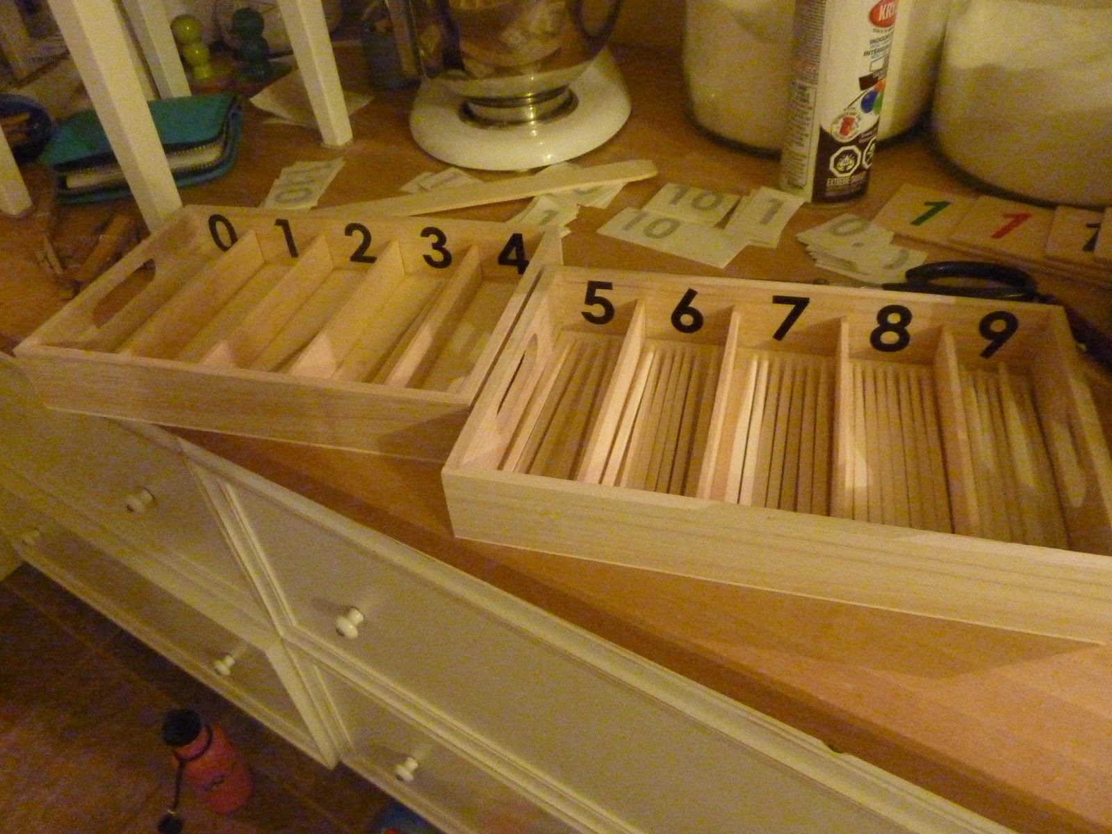 Póki co zrobiłam tylko pierwsze pudełko 0-4, niedługo dorobię również drugą część 5-9. Można wykonać jedno długie, jednak podział ułatwia wprowadzenie w świat liczb najmłodszych dzieci - nasze pudełko zrobiłam głównie z myślą o S.